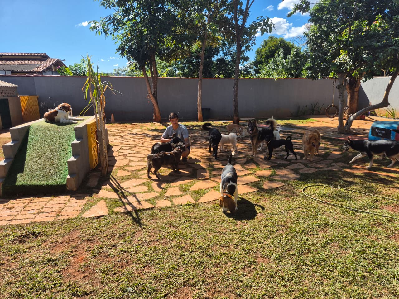 No Brasília Pet Hotel seu cãozinho fica livre o tempo todo, podendo correr pelo jardim e brincar com outros cães e com humanos.